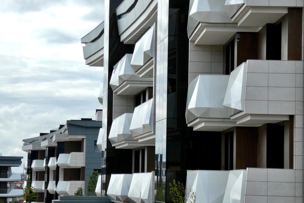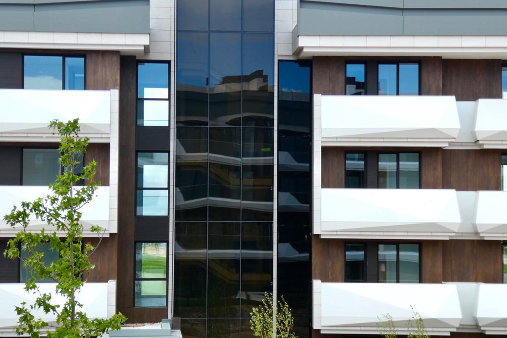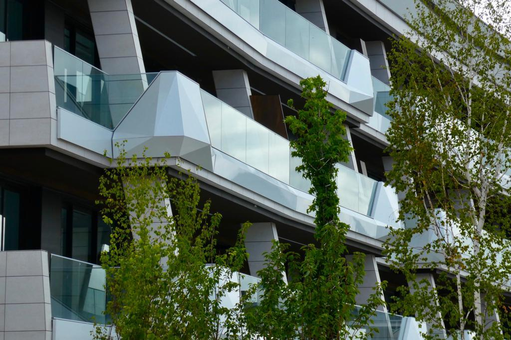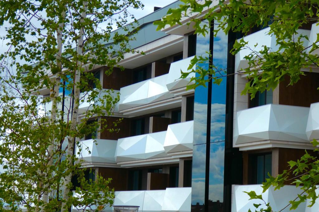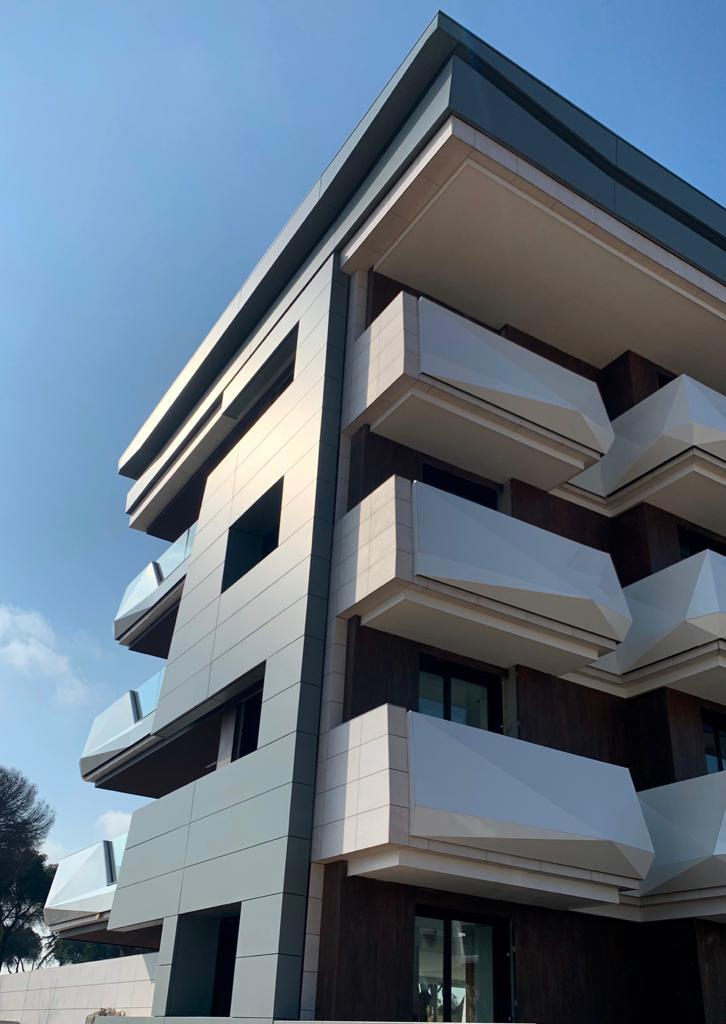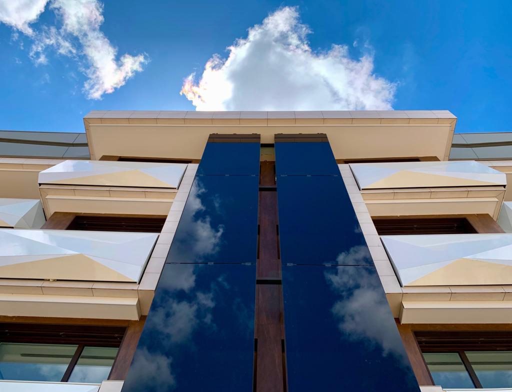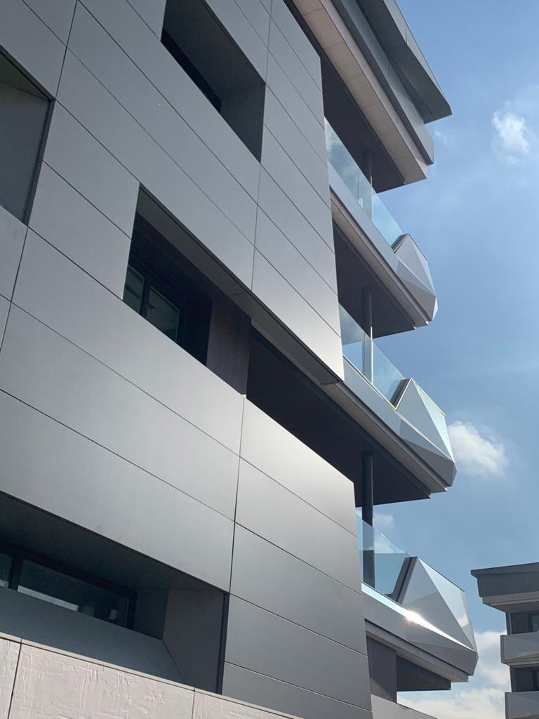 • Actividad: Revestimientos metálicos Honeycomb con sistema poligonal Proinller, Barandillas de vidrio, Muros Cortina para Fachada de escaleras.